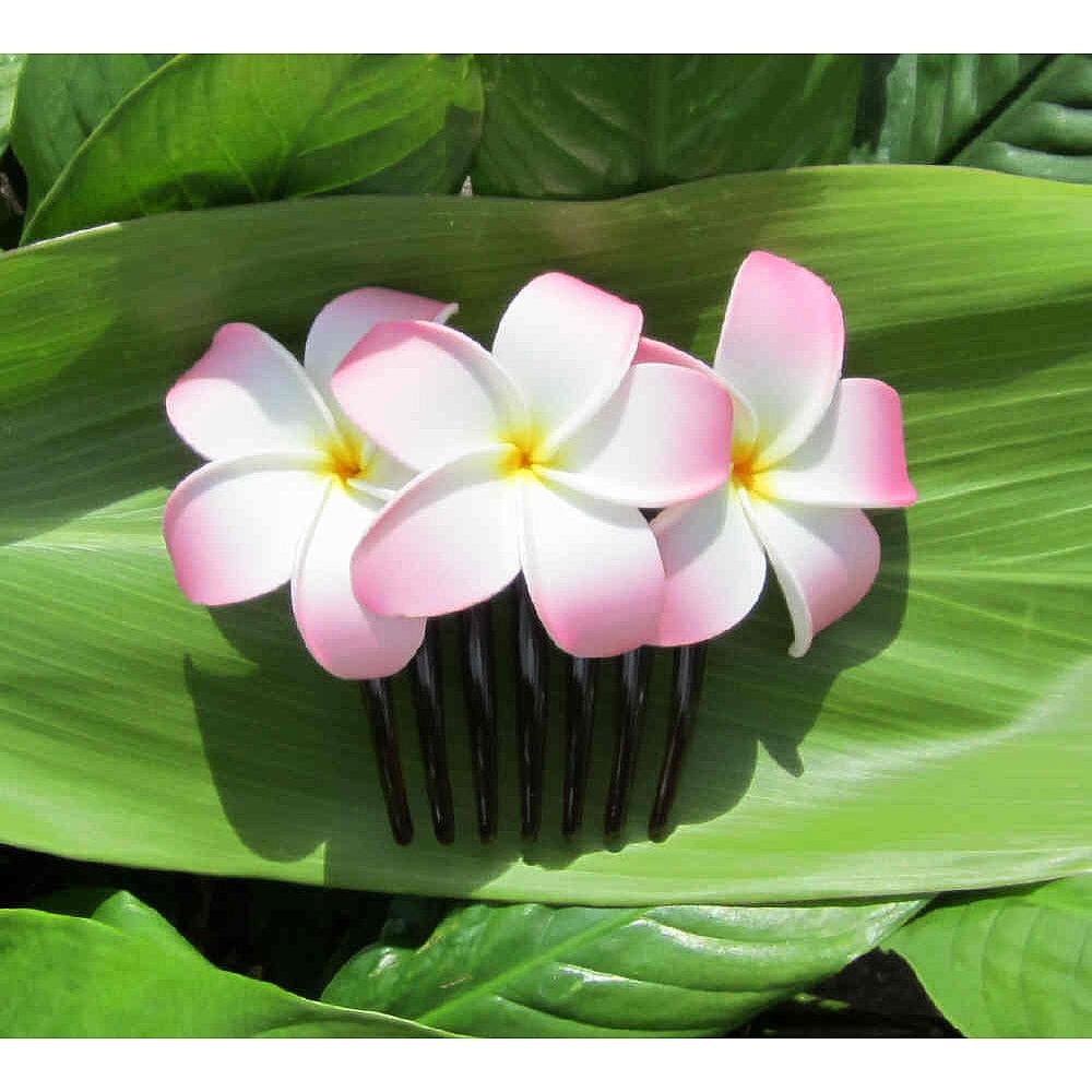"curled-in plumeria hair comb"