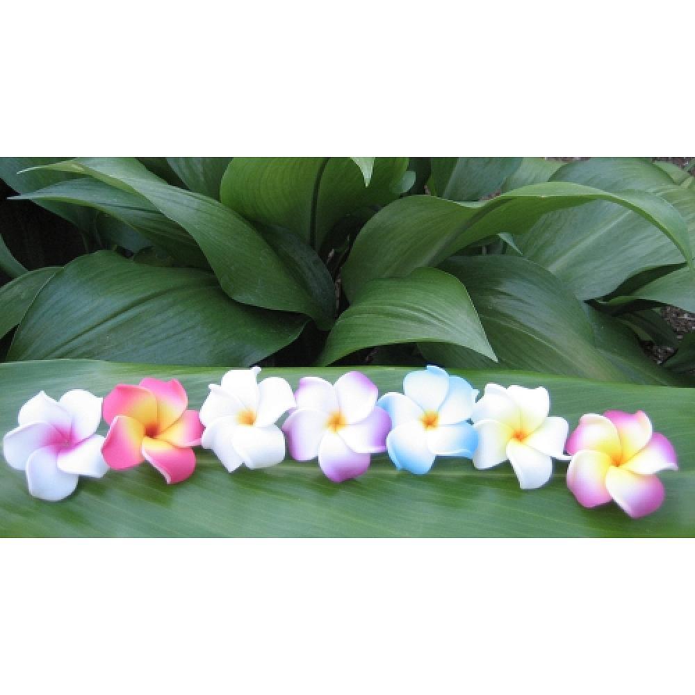 These Plumerias are NOT MADE OUT OF CLAY or FABRIC. They are made out of a FOAM & PLASTIC MATERIAL that is SO LIGHT, THAT YOU MAY FORGET THAT YOU EVEN HAVE THEM ON! |