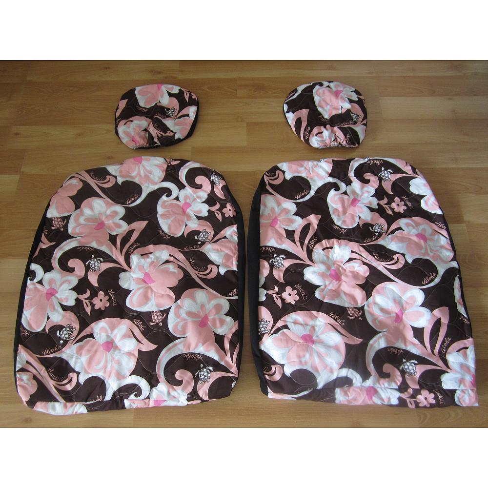 "pink brown - aloha flowers" (2PC + separate headrest covers) "pink brown - aloha flowers" (2PC + separate headrest covers) "pink brown - aloha flowers" (2PC + separate headrest covers)