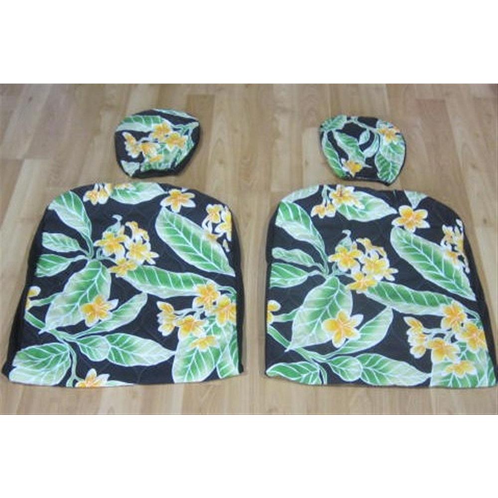 "black - orange plumerias" (2PC + separate headrest covers) "black - orange plumerias" (2PC + separate headrest covers) "black - orange plumerias" (2PC + separate headrest covers)